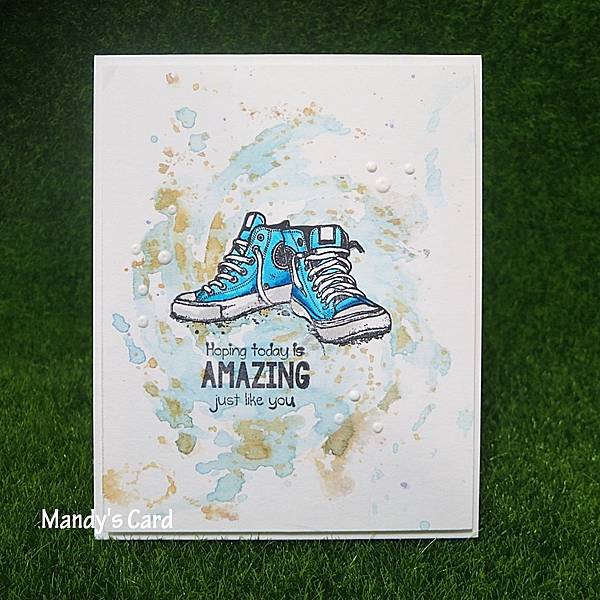 上色;上完色後,剪下,貼回背景紙上;這顆印章有很多漂亮的點點,所以要先蓋在卡紙上,這樣才會維持這雙球鞋的生動、逼真。Mandy 發表在 痞客邦 留言(0) 人氣(111)