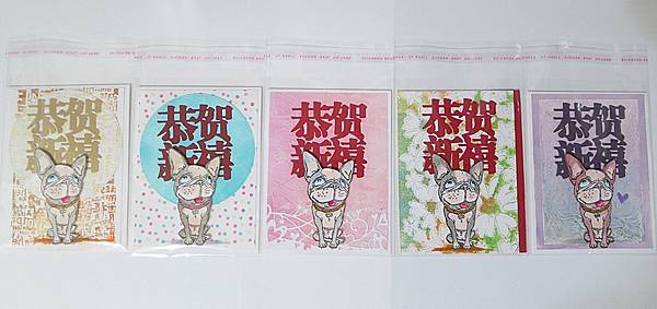 小狗,一口氣做了五張狗年新年卡。平常我是以玩背景為樂,所以我就想用五種不同的背景技法,來呈現同樣一隻狗(